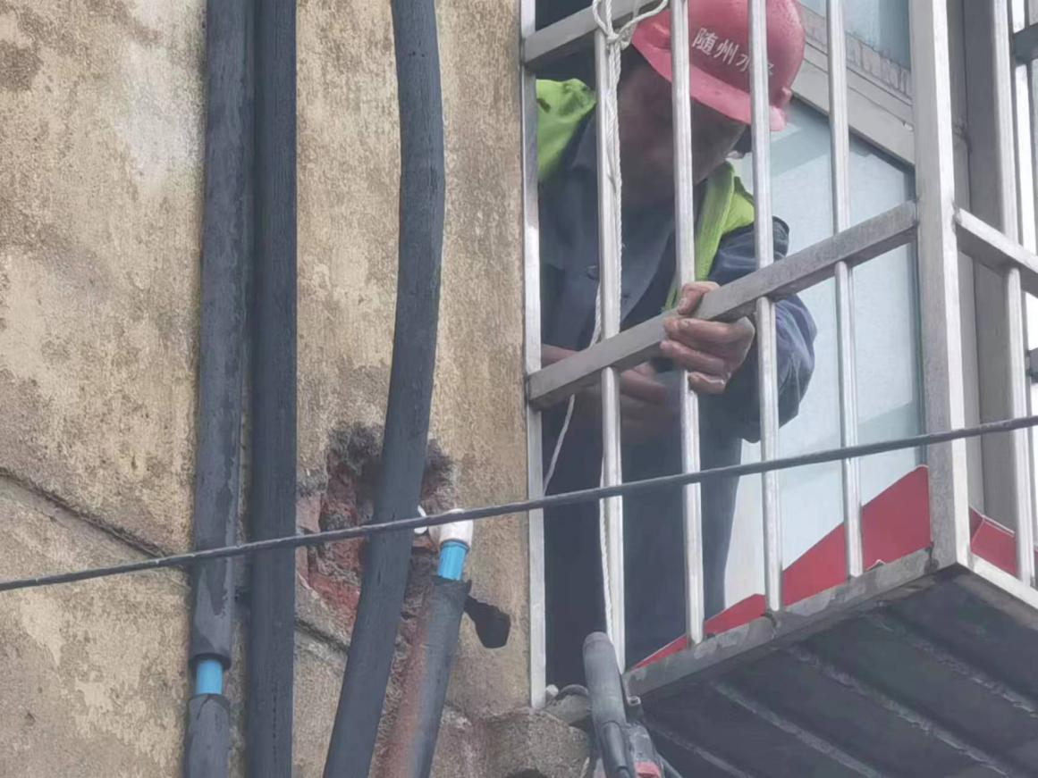 “這里水管漏了,外面的墻都打濕了,麻煩你們快來看看啊!”3月20日上午8點30分,建設工程公司接到市民的求助電話,稱他家墻外有根水管在向外冒水。運維中心牽頭人張遠燈立即安排維修人員第一時間趕往現場。經過詢問和現場查看后,發(fā)現事故原因是2樓外墻進屋處彎頭漏水,但該項維修內容本不屬于公司的維修范疇。維修人員看到無助的老人,便毫不猶豫地爬上2樓陽臺,在狹窄的空間內艱難地為老人更換破損管件。雖然是用戶房屋內部管道漏水,水務人本著想用戶所想,急用戶所急的服務精神,不計較、不推諉的幫助用戶及時解決漏水難題。
