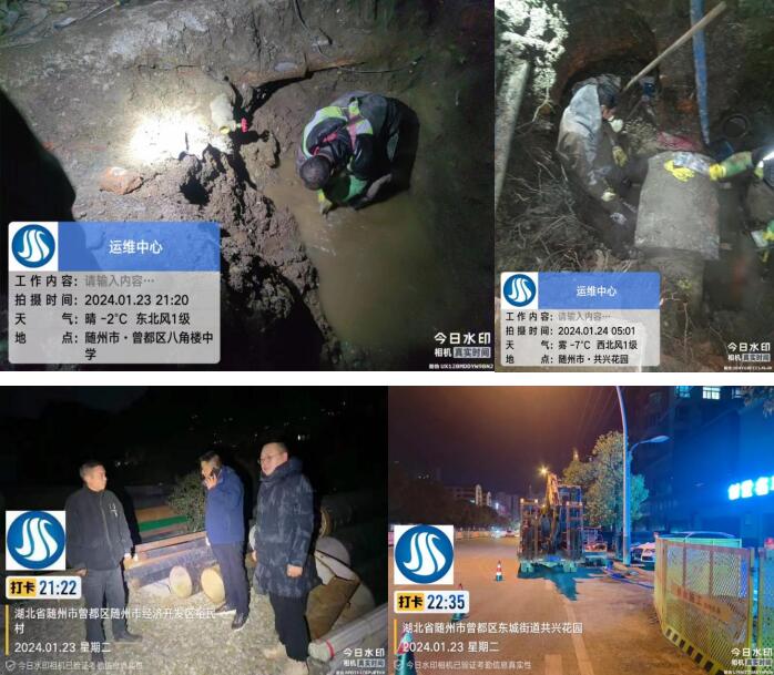 1月23日,有市民反映鐵路片區(qū)下坡處地面有積水,附近有學(xué)校,周邊住戶也較多,對市民出行造成極大安全隱患。測漏人員第一時間到場勘查,排查后發(fā)現(xiàn)漏點在下坡處拆遷區(qū)內(nèi),工作人員及時與當?shù)厣鐓^(qū)居委會和相關(guān)部門取得聯(lián)系,經(jīng)過多方協(xié)調(diào),滿足施工條件后,立即組織搶修隊伍進行開挖,在寒風(fēng)凜冽的深夜,搶修人員爭分奪秒,全然顧不上他們已凍得通紅的雙手,只希望以最快速度完成改造作業(yè),最大程度減小停水作業(yè)對居民的影響。當晚21點25分歷時3小時將DN100管道漏水點搶修完畢,保障了極寒天氣下周邊居民、學(xué)生出行的安全。