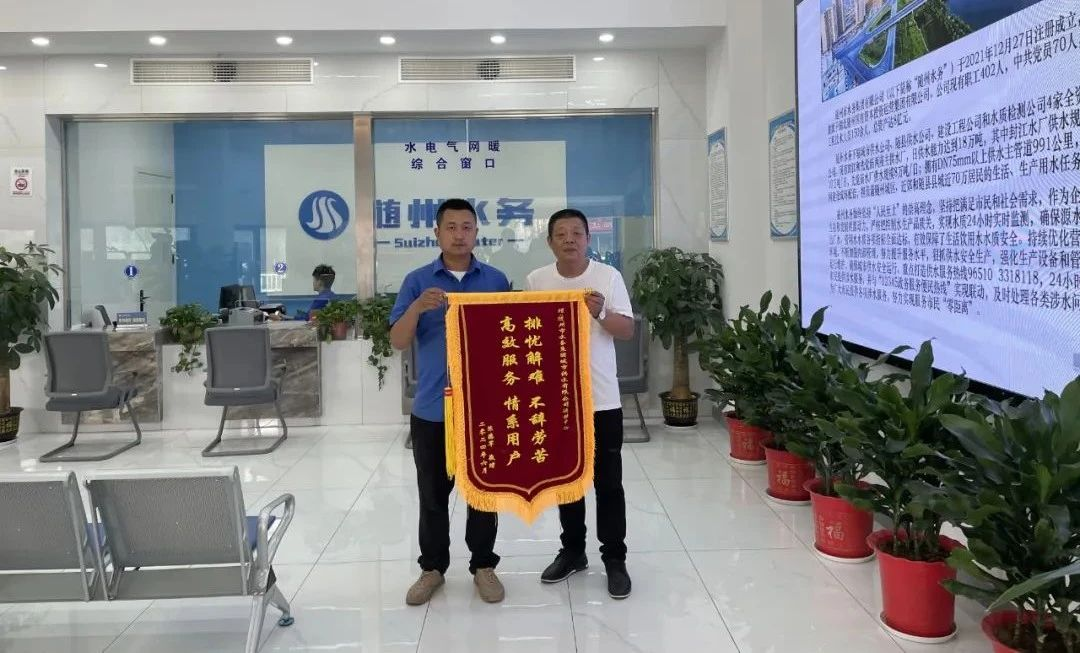 一面錦旗代表的不僅是感謝和肯定,也彰顯了隨州市水務(wù)集團(tuán)的責(zé)任和擔(dān)當(dāng)。近年來,該市水務(wù)集團(tuán)堅(jiān)持以群眾為中心,以全心全意為用戶服務(wù)為宗旨,始終秉承以用戶需求為導(dǎo)向,做到待人有溫度,服務(wù)見態(tài)度,落實(shí)強(qiáng)力度,回復(fù)加速度,致力于幫助用戶解決急難愁盼問題,用實(shí)際行動詮釋了深入優(yōu)化營商環(huán)境的決心和信心,讓供水服務(wù)更加溫暖、更加周到,讓廣大用戶用水更放心、更舒心。