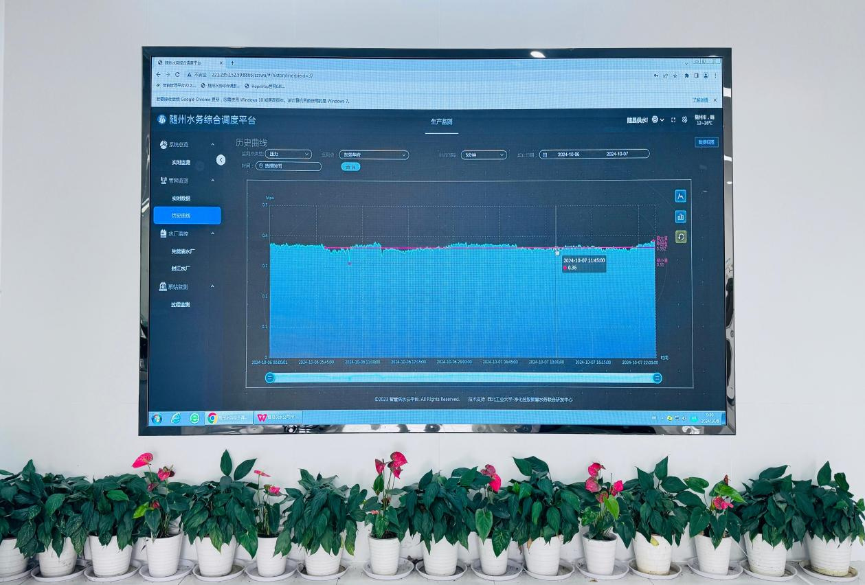 在隨州市水務(wù)集團(tuán)隨縣供水公司的大屏幕上實(shí)時(shí)顯示著各個(gè)區(qū)域的供水壓力、流量等數(shù)據(jù)。值班人員全神貫注地盯著屏幕,密切關(guān)注著供水動(dòng)態(tài)。他們深知,任何一個(gè)數(shù)據(jù)的異常都可能影響到千家萬戶的用水安全。一旦發(fā)現(xiàn)問題,他們會(huì)迅速采取措施,確保供水系統(tǒng)的穩(wěn)定運(yùn)行。