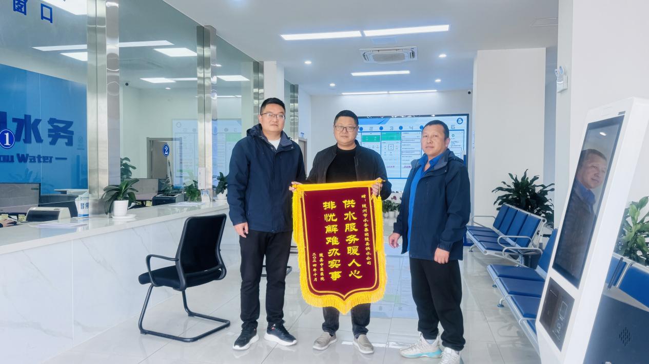 2024年11月6日,一面印有“排憂解難辦實事,供水服務(wù)暖人心”的錦旗被送到了隨州市水務(wù)集團隨縣供水公司。這面錦旗來自隨縣中醫(yī)醫(yī)院,不僅僅是對隨縣供水工作的高效服務(wù)和專業(yè)精神深感敬佩,更是雙方友好合作的生動見證。