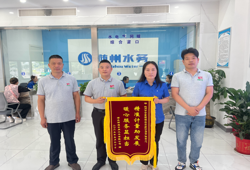 “精準(zhǔn)計(jì)量助發(fā)展,暖心服務(wù)顯擔(dān)當(dāng)”,6月5日,一面鮮紅的錦旗被鄭重地送到隨州市水務(wù)集團(tuán)城市供水有限公司客戶服務(wù)中心。湖北四通專用汽車有限公司總經(jīng)理帶隊(duì)專程致謝,對公司免費(fèi)提供的水表檢定服務(wù)給予高度贊揚(yáng),表達(dá)誠摯謝意。這面錦旗不僅是企業(yè)對隨州水務(wù)優(yōu)質(zhì)服務(wù)的認(rèn)可,更是隨州水務(wù)以 “五免五心” 惠企政策為企業(yè)發(fā)展助力的生動(dòng)體現(xiàn)。