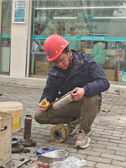 2025年7月,又一嚴(yán)峻考驗(yàn)降臨,交通大道兩水段突發(fā)區(qū)域性停水。故障就是沖鋒號(hào),劉吉再次主動(dòng)請(qǐng)纓,率隊(duì)緊急出動(dòng),戶(hù)外溫度直逼40攝氏度。頂著烈日,劉吉帶領(lǐng)隊(duì)員們,沿著疑似管線(xiàn)段進(jìn)行地毯式徒步排查,最終確定故障點(diǎn)位于一處橋梁下方的穿橋主管道。